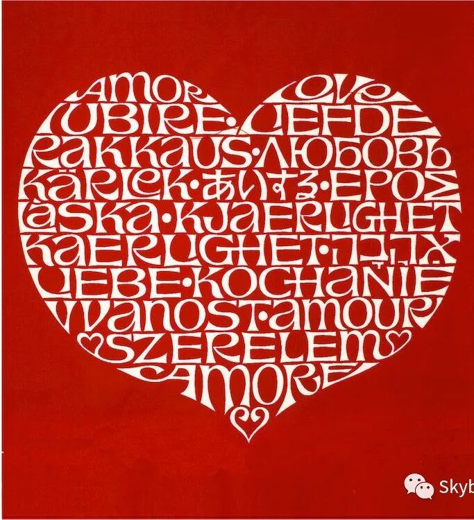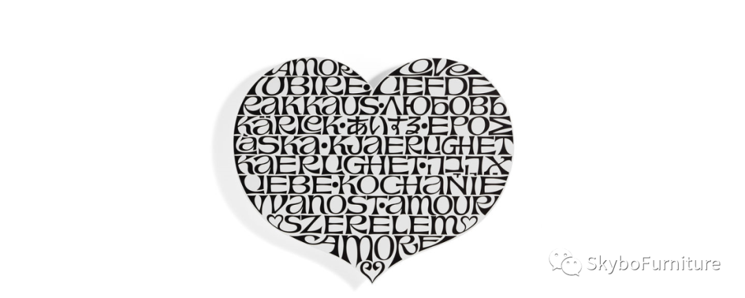 該設(shè)計(jì)最初于1961年為紐約市的紡織品和物件商店創(chuàng)建,充分體現(xiàn)了吉拉德(Girard)對(duì)字體,圖形,語(yǔ)言的熱愛(ài)。?它干凈,大膽和簡(jiǎn)潔的設(shè)計(jì),同時(shí)又柔和,浪漫而迷人。?吉拉德(Girard)不斷在自己的作品中編織出和平,愛(ài)與諒解的信息,卻從未屈服于媚俗或多愁善感,《International?Love?Heart》就是一個(gè)很好的例子。?這種獨(dú)特的心形設(shè)計(jì)包含許多語(yǔ)言中的“愛(ài)”?一詞,也見(jiàn)證了吉拉德一生對(duì)方言的迷戀。